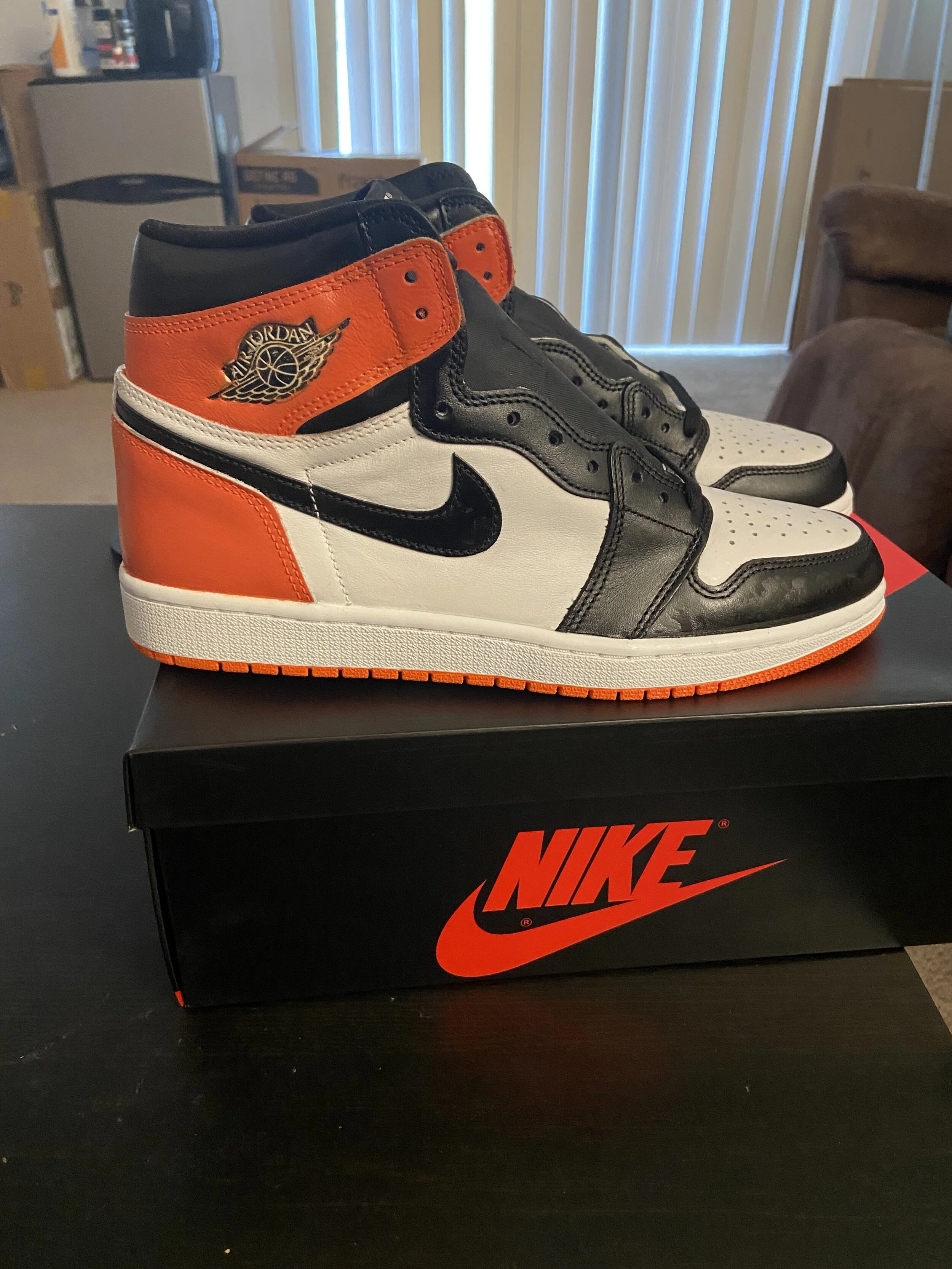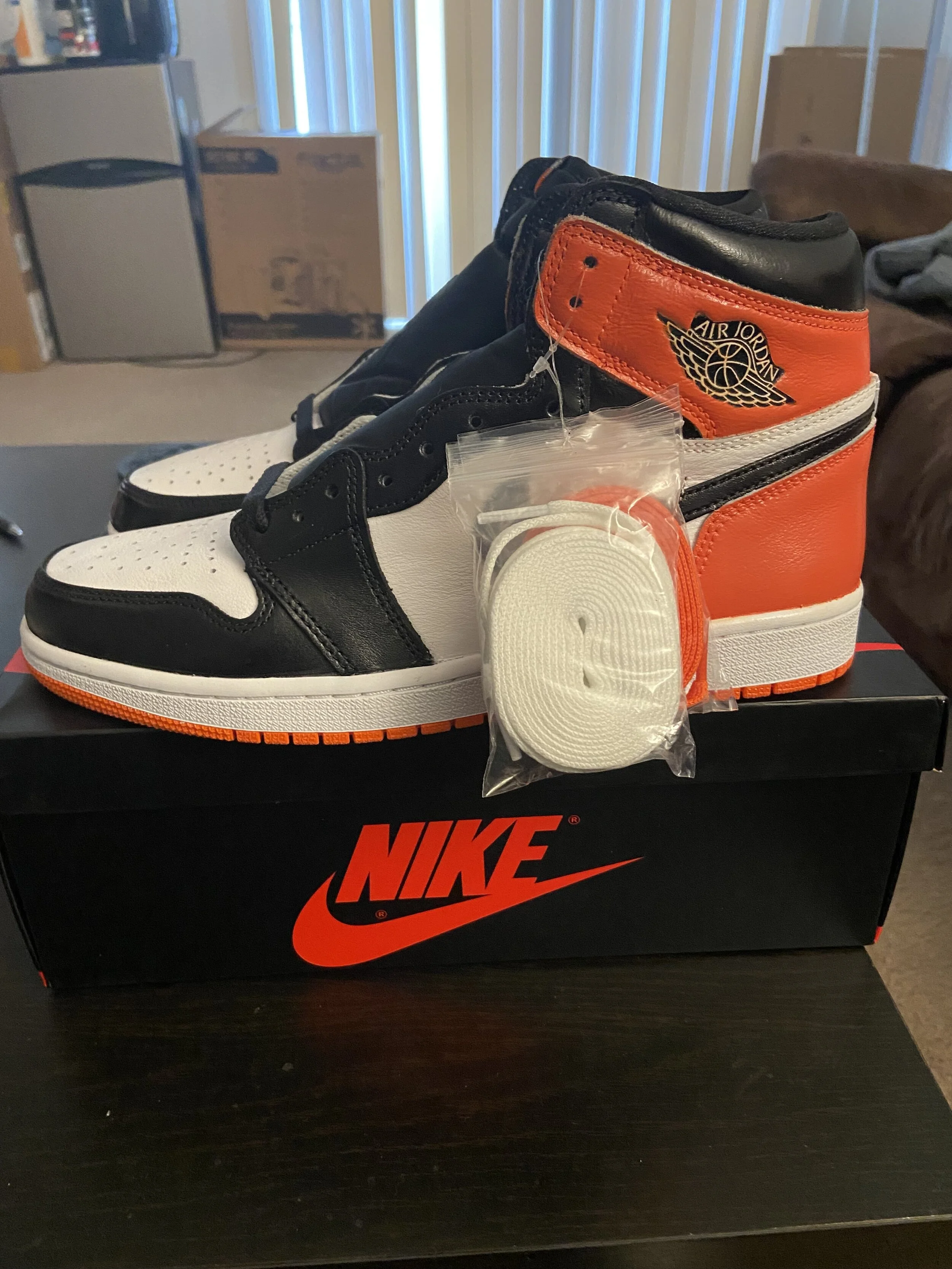 By using the recently released Jordan 1 Electro Orange as the blank canvas. We combined two previous iconic colorways (Jordan 1 Black toe and Jordan 1 Shattered Backboard) to create a new icon.