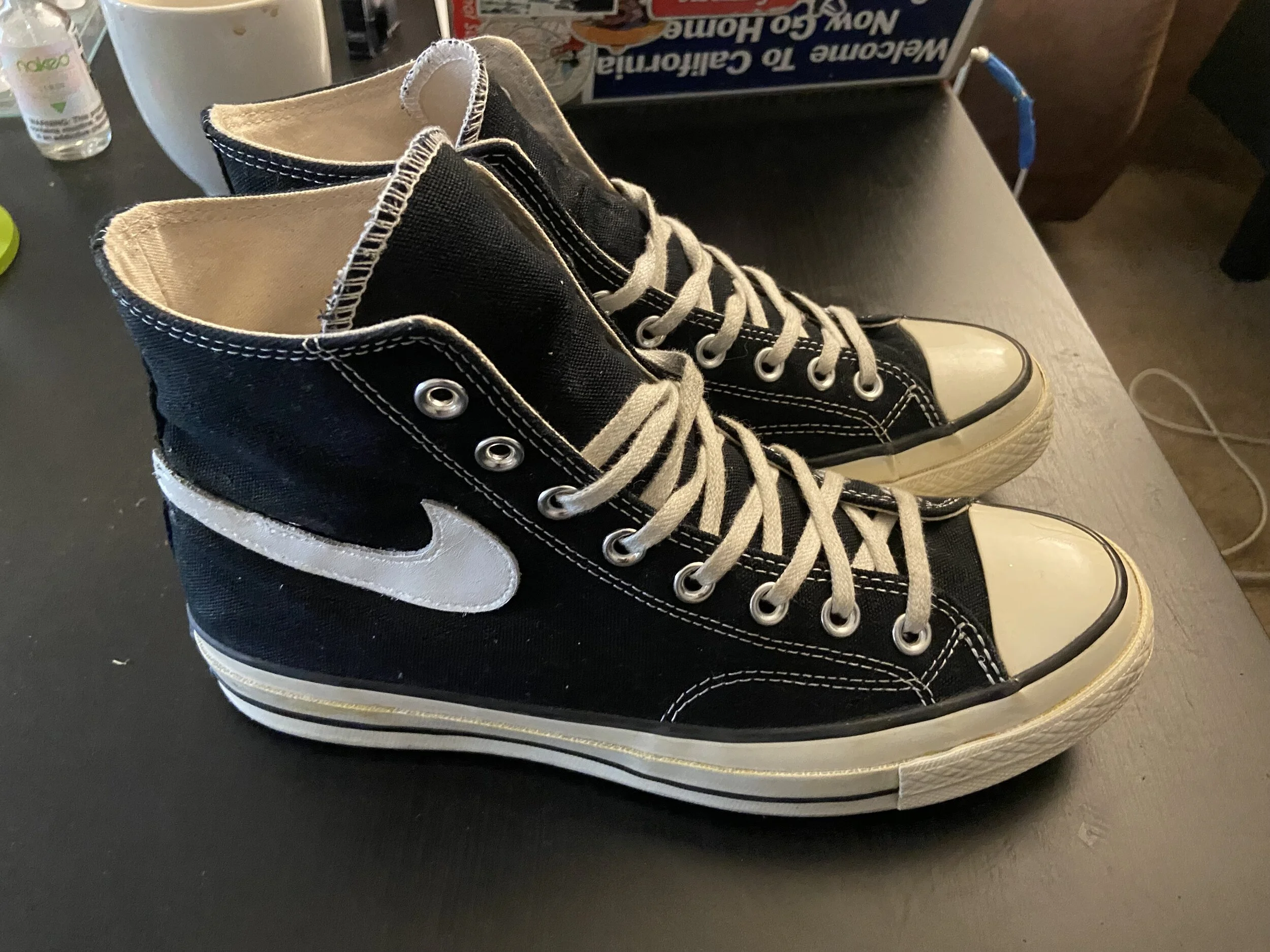 Not only is the Converse Chuck Taylor the most timeless silhouette in all of modern fashion, it has transcended what a street sneaker should be. Its simplistic yet elegant canvas upper is a staple in goth, punk and even modern hip-hop aesthetics. CTM, created this limited custom for Lebron James, but soon prominent figures such as Nigo from A Bathing Ape and Uniqlo, as well as legendary artist Erykah Badu flocked to the California brand for personalized pairs. Here is my bootleg of the bootleg.